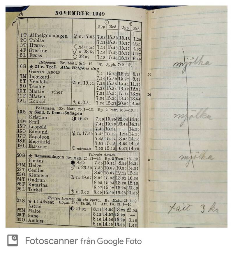 Vissa hade en anteckningssida och där kunde man anteckna saker som hänt eller var viktigt